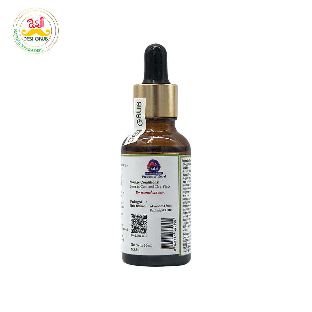 Desi Grub Argan Oil is a luxurious, cold-pressed oil derived from the kernels of the Argan tree. Revered as “liquid gold,” this pure and natural oil is rich in Vitamin E, antioxidants, and essential fatty acids, offering a complete care solution for both skin and hair.