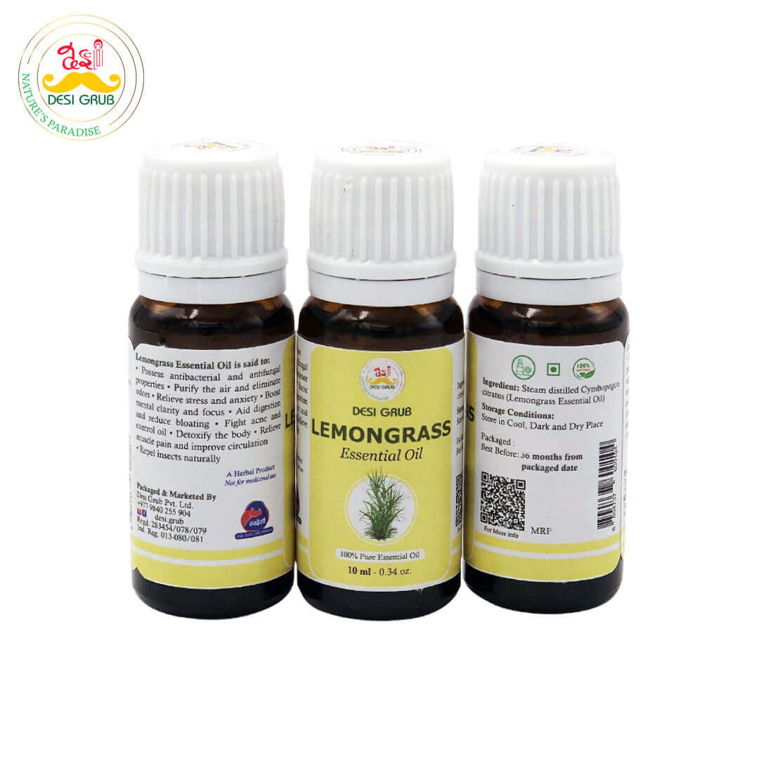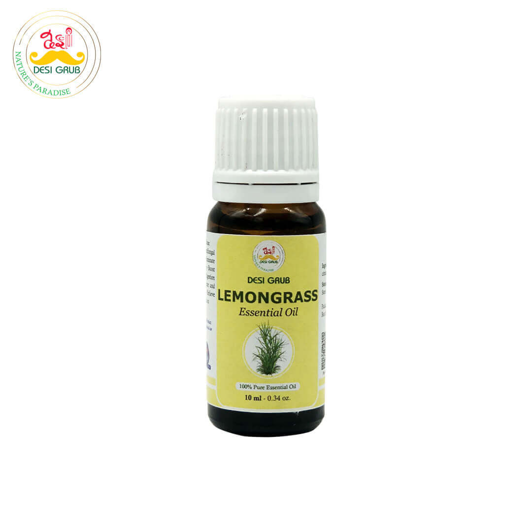 Desi Grub Lemongrass Essential Oil 10ml| 100% Pure | Natural Air Freshener, Insect Repellent & Skin Detox Oil