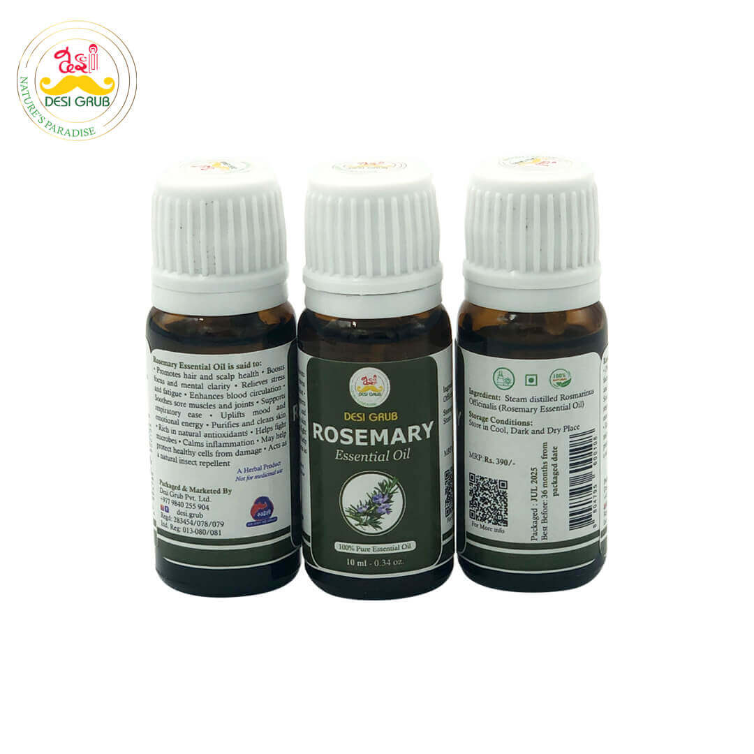 Desi Grub Rosemary Essential Oil 10ml – For Hair, Skin & Aromatherapy