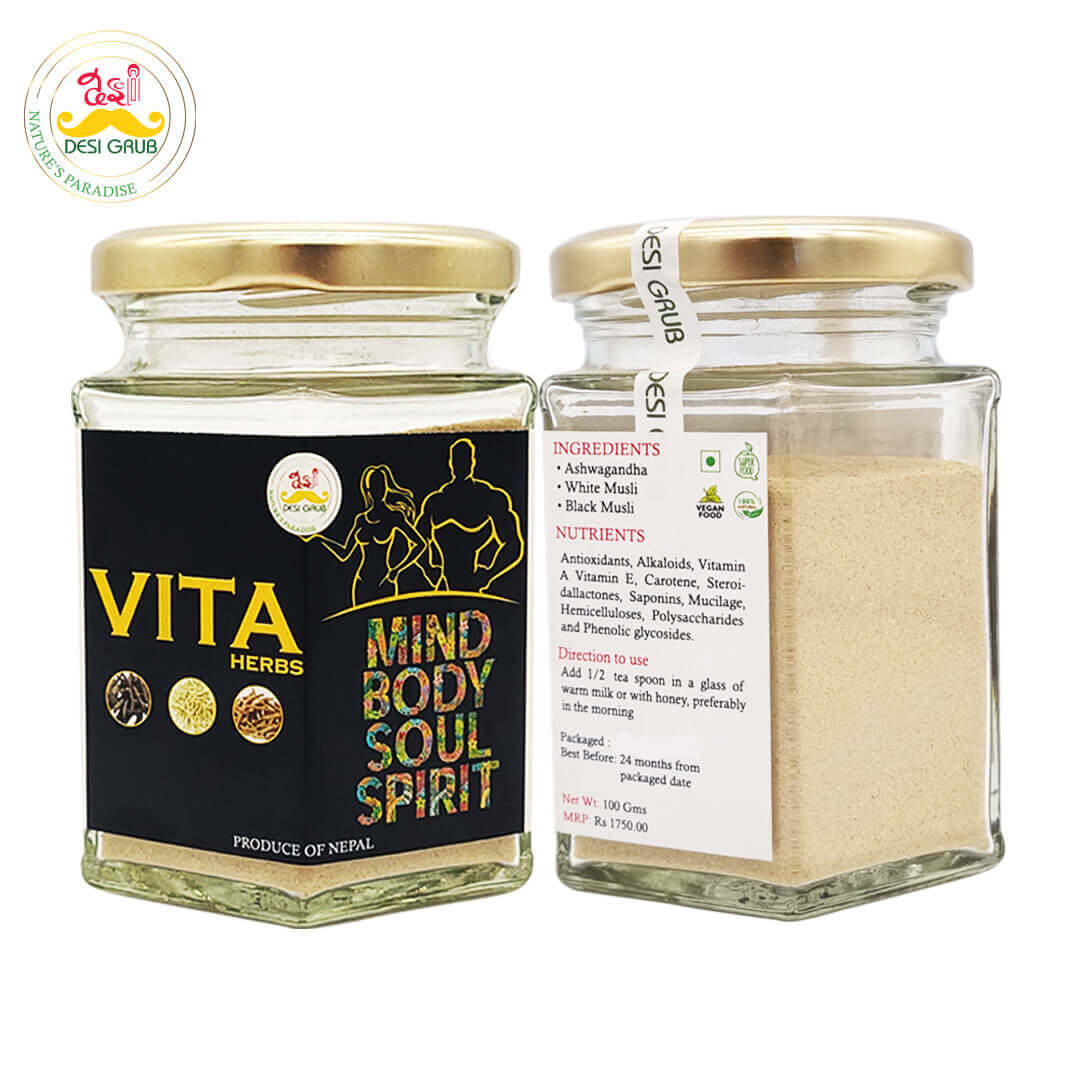 - Alternatively, take ½ teaspoon of Vita Herbs, mix it with ½ teaspoon of Desi Grub Raw White Honey, mix until a paste is formed, and then consume.