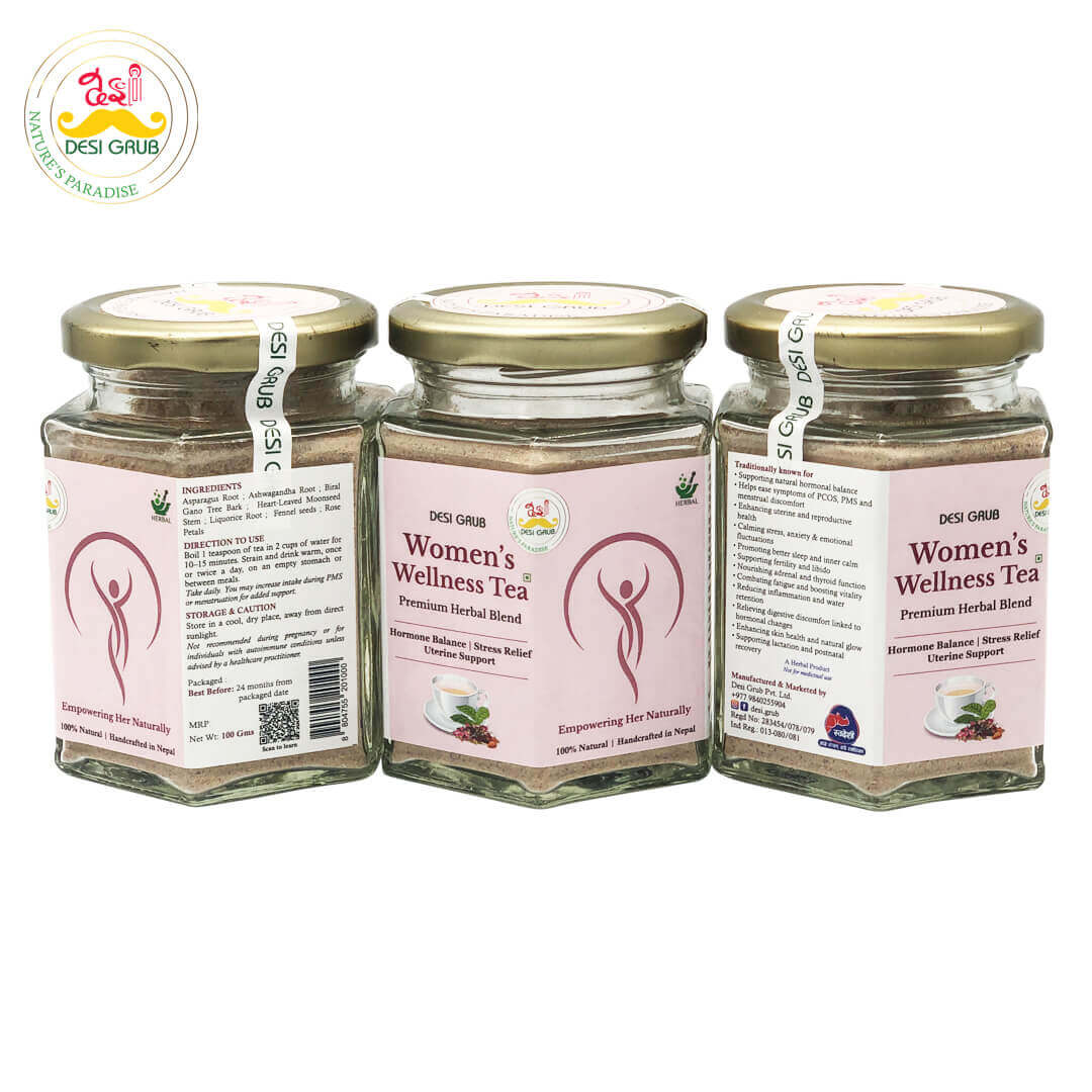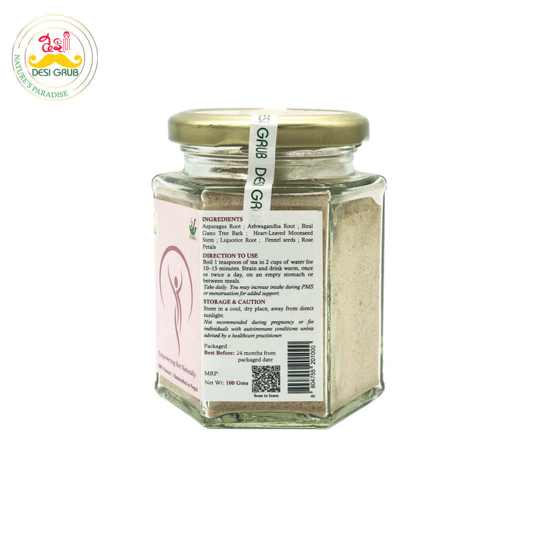 Desi Grub Women’s Wellness Herbal Tea 100g – Hormone Balance, PCOS & PMS Support, Stress Relief, Uterine Health
